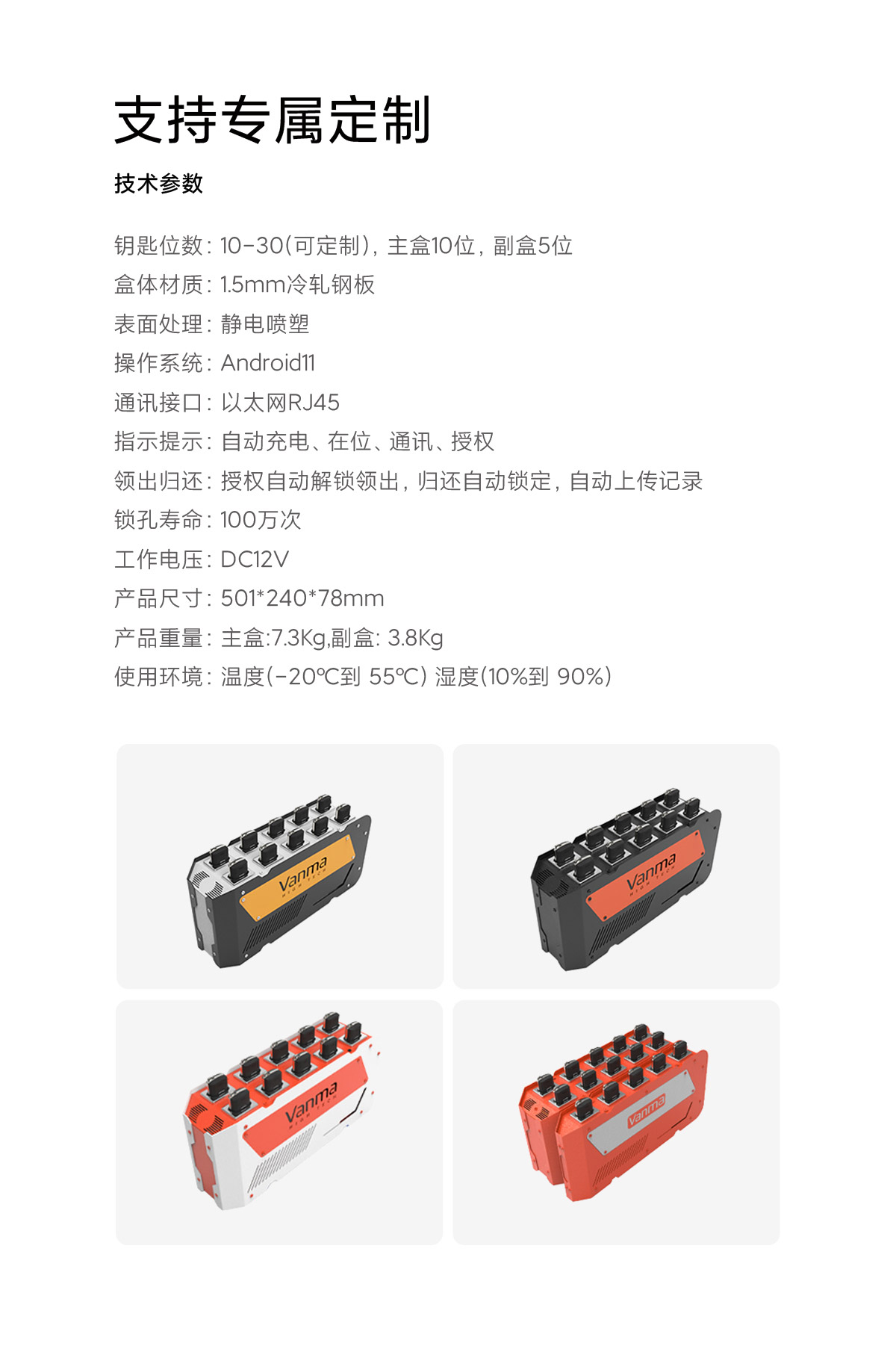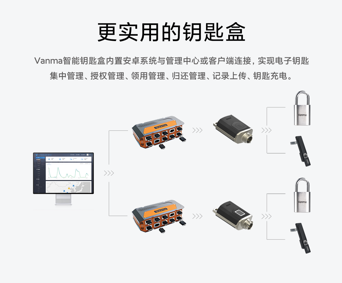 Vanma智能鑰匙盒內置安卓系統與管理中心或客戶端鏈接,