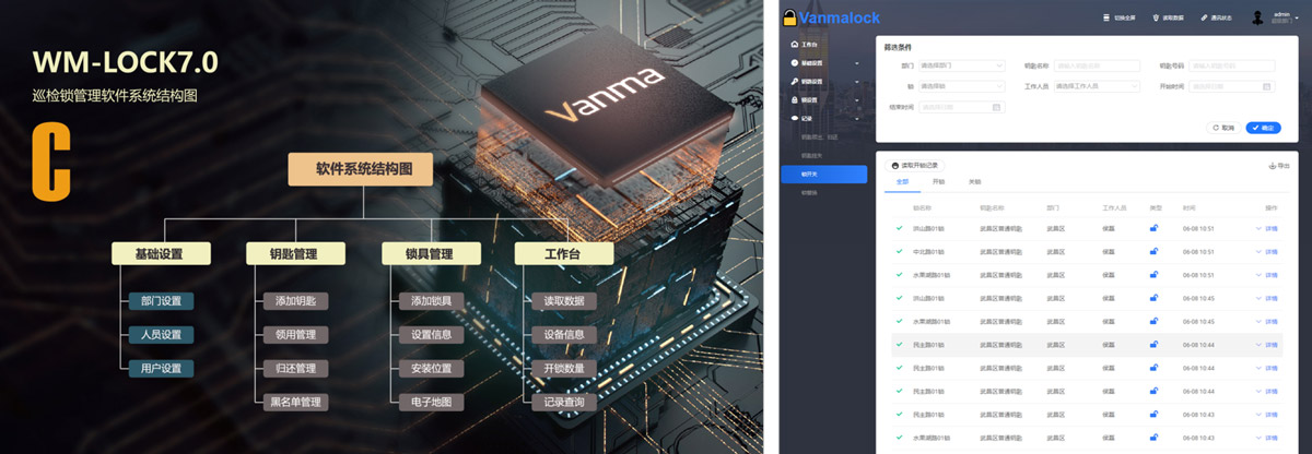 Vanma電子鑰匙配置了指紋識功能,只有通過指紋驗證才能通過電子鑰匙打開鎖具,電子鑰匙自動記錄開鎖人員信息。當電子鑰匙開啟鎖具時記錄開鎖時間,工作結合后再用電子鑰匙將鎖具關閉,電子鑰匙會自動記錄關鎖時間。歸還鑰匙時將電子鑰匙中的數據導入到系統軟件中,實現了對整體鎖具開關管理。同時高端的Vanma電子鑰匙還配置藍牙功能,與手機APP連接可以實現遠程授權開鎖功能和未關鎖報警功能。