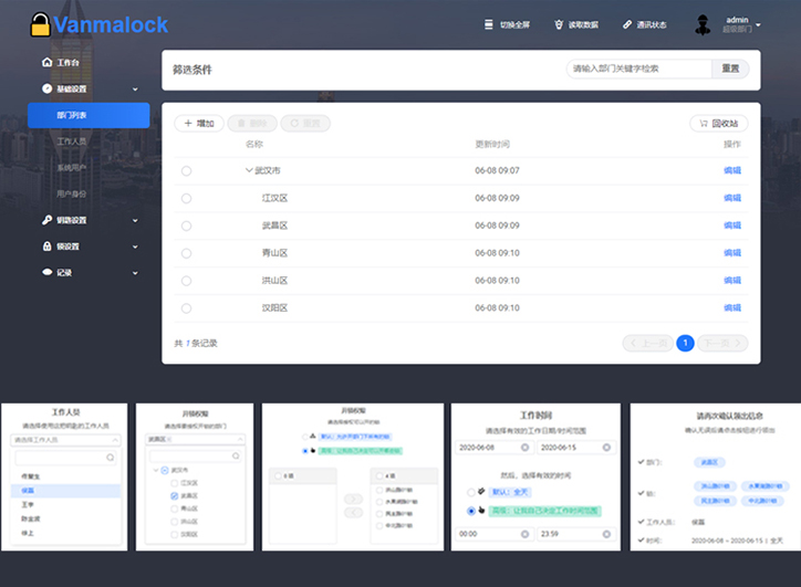 系統管理軟件是電力鎖具管理系統的核心,對人員信息、鎖具信息、設備信息、鑰匙信息、鑰匙授權、鑰匙的領用與歸還、開關鎖記錄等數據的管理與分析。管理人員通過系統管理軟件實現對設備、人員、鑰匙、鎖具的統一管理,通過對開關鎖記錄的及人員出勤記錄的數據分析,為安全管理提供數據依據。