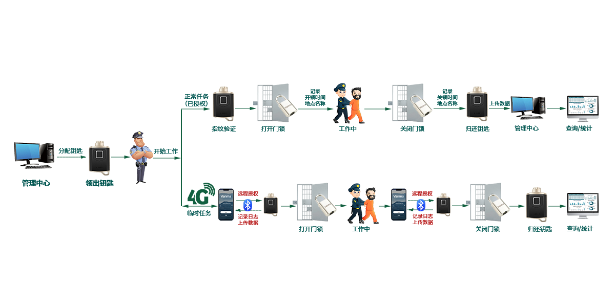 作業過程管理電子鑰匙記錄開關鎖時間,作業過程有據可依。